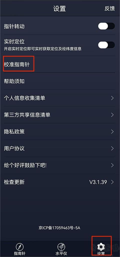 1、进入“设置”界面,点击校准“指南针”功能,按照页面的指示转动手机校准。