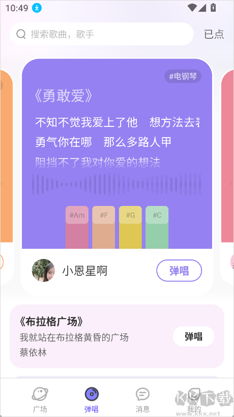4、通过广场浏览热门音乐内容,同时可将个人弹唱成果上传展示,让更多人听见你的声音;