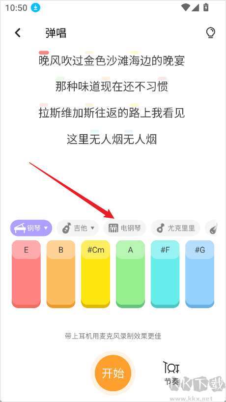 1、支持自由点歌,搭配专业级伴奏,可选用钢琴、吉他等不同乐器进行弹奏演唱;