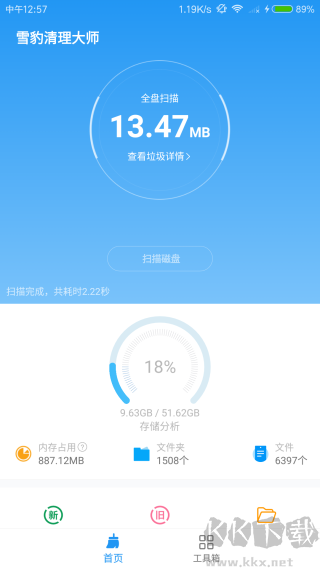 雪豹速清app(雪豹清理大师)是一款让清理更简单便捷的手机内存优化与垃圾清理软件。能帮手机远离冗余垃圾文件,操作功能更强大,轻松实现全盘自动扫描,空文件夹、大文件、冗余文件、新文件、安装包,以及图片、视频、音频、文档、压缩包等几乎所有类型的文件都能被扫描到,还支持自动归类后展示给手机用户。需要的朋友快来下载试试吧!