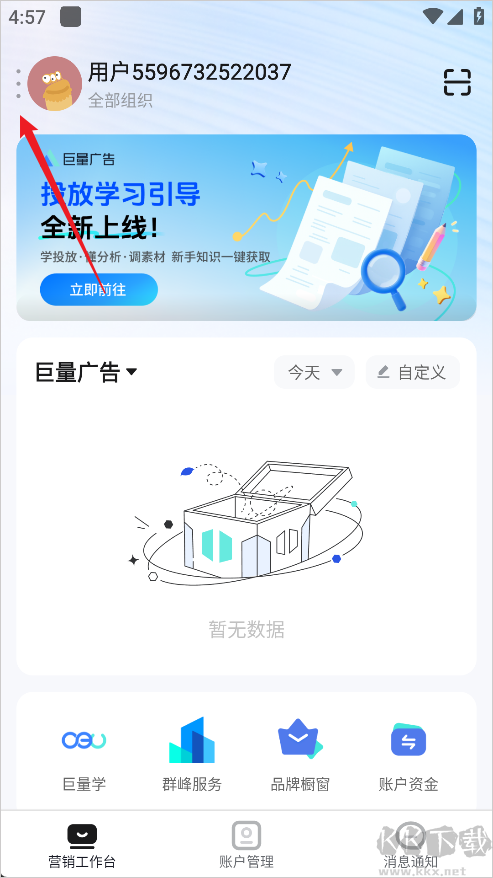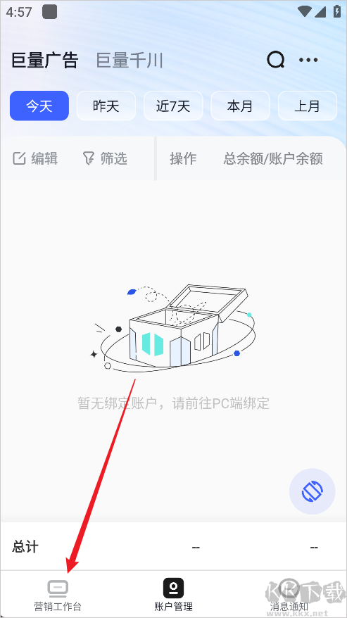 1、首先点击巨量引擎官方版下方导航栏的【营销工作台】
