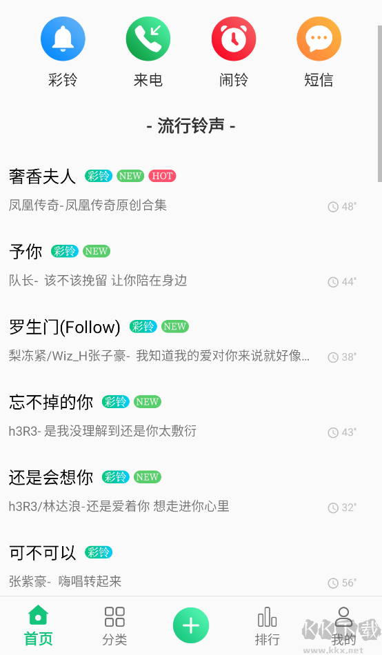 2、界面布局清晰,操作流畅顺手,热门铃声一目了然,查找与下载过程省时省力。