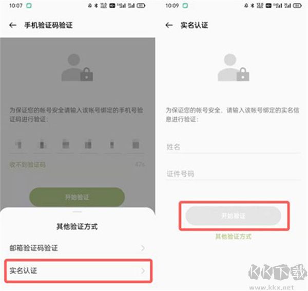 6、实名认证:手机号验证界面点【其他验证方式】选【实名认证】,输实名信息,点【开始验证】