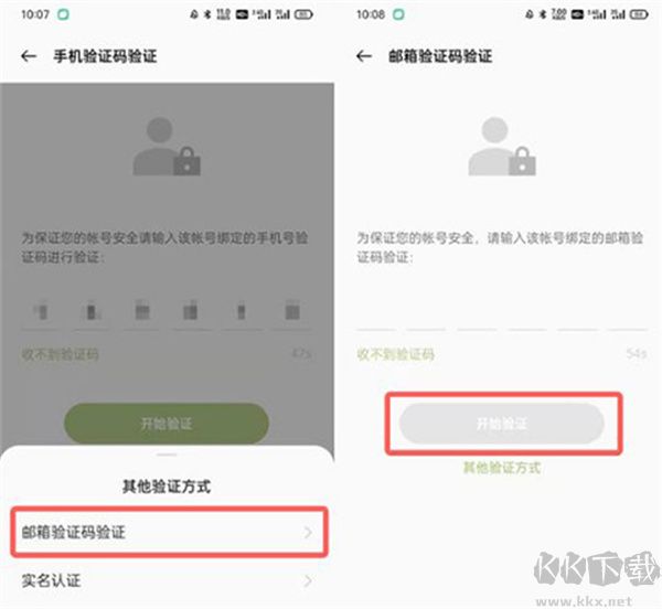 5、邮箱账号验证:确保绑定邮箱,手机号验证界面点【其他验证方式】,选【邮箱验证码验证】,输验证码点【开始验证】