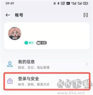 1、打开 oppo 手机【设置】,点上方【账号】,再点【登录与安全】进入账号安全设置;(或软件点 “我的”- 右上角齿轮 “设置”-“欢太账号设置”-“修改个人信息” 进入)