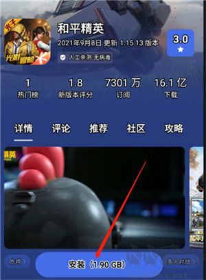 3、点击游戏头像进入安装界面,点下方安装开始下载安装