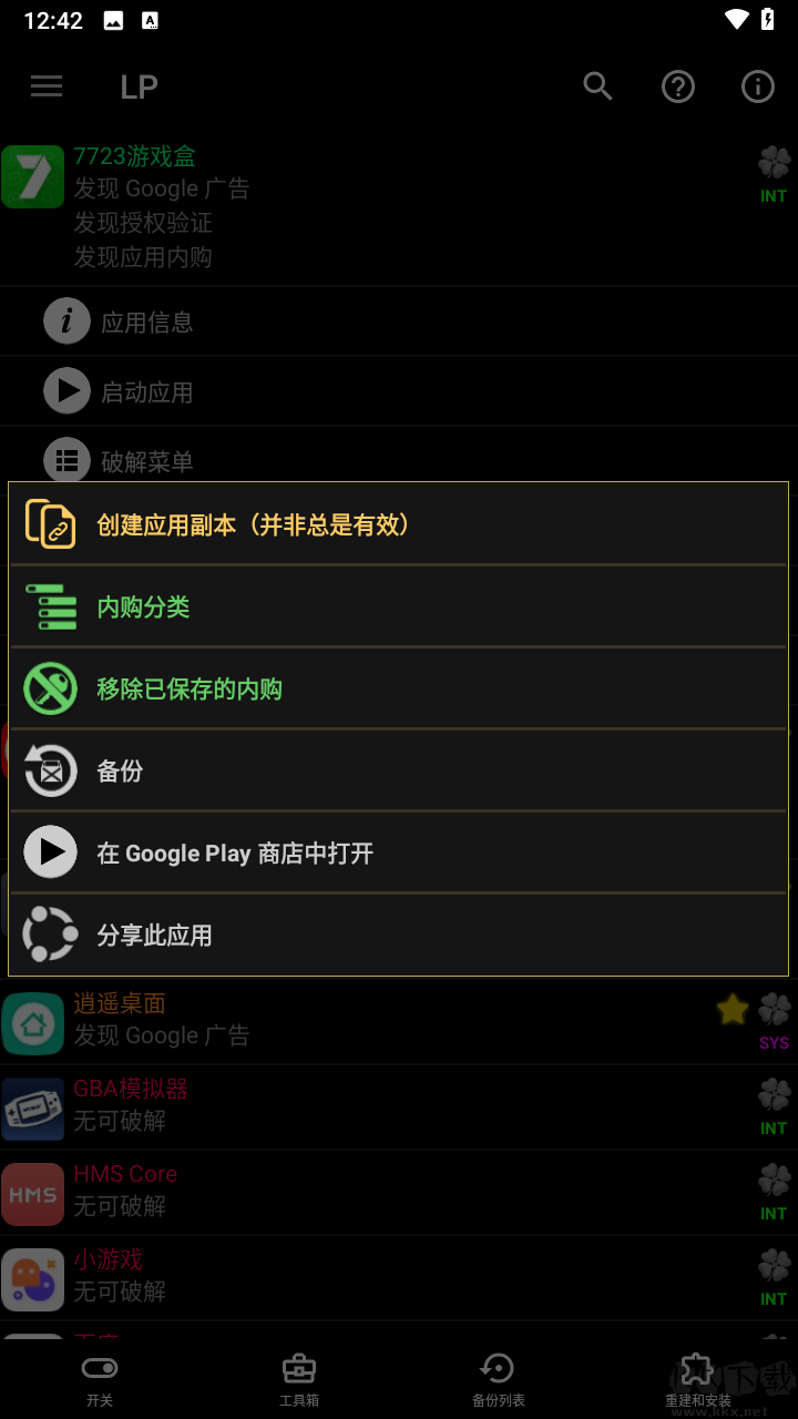 1、支持自定义破解、移除 Google 及亚马逊授权验证、移除 Google 广告、手动破解。