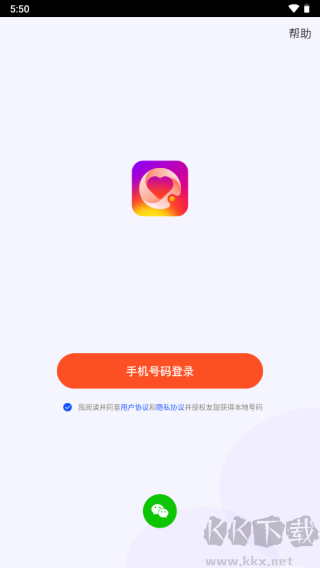 1、下载安装友甜交友,进入,使用手机号码登录与微信登录两种方式