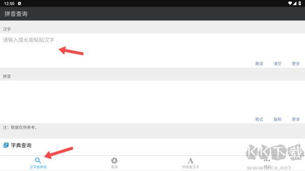 4、拼音反查汉字:根据输入拼音寻找匹配汉字,兼容各类拼音组合及带声调检索模式。