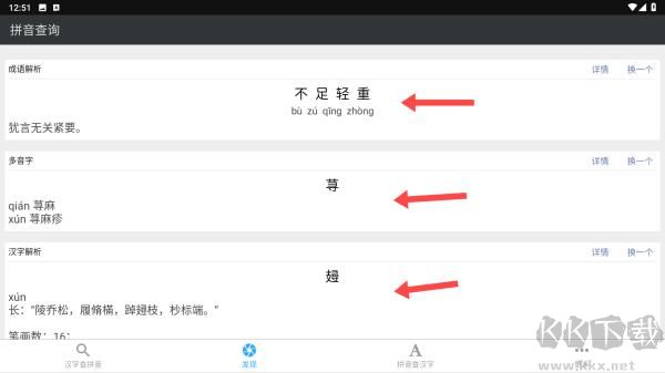 汉字转拼音app是的一款汉字拼音学习应用,拥有真人发声、普通话测评、字词解析与典籍查阅,还收录大量成语及口语练习材料,能帮助大家避开不识文字的困扰,讲好规范口语,孩子还可以自行了解生字读法,逐步培养识字兴趣,掌握发音规律,欢迎感兴趣的朋友下载获取使用。