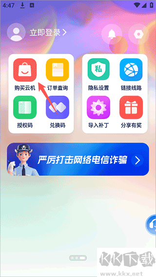 在云设备界面点击桃心标识,选择退出选项便可返回应用主屏幕。