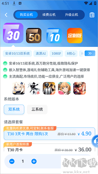 4、订单支付成功后将立即获得一台虚拟移动设备。