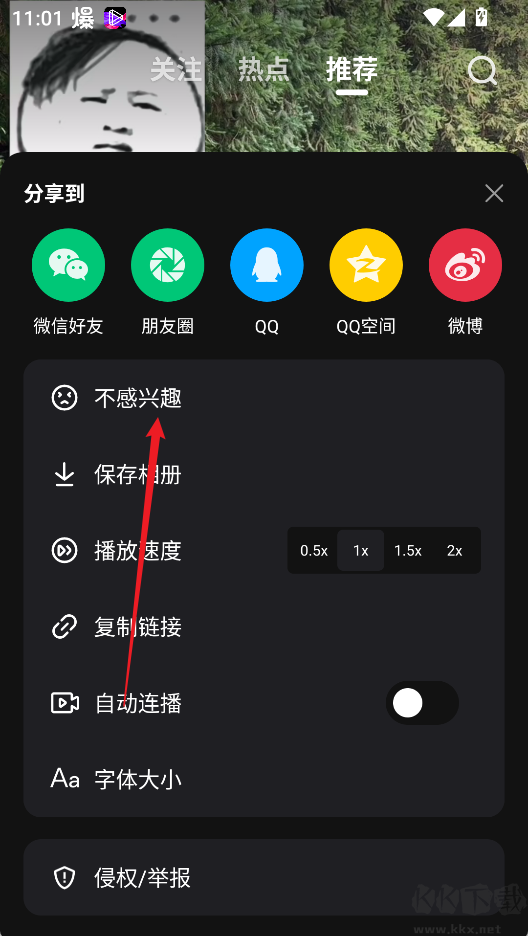 2、当弹窗选项出现后,点击“不感兴趣”,系统就会根据反馈逐渐优化推荐内容。
