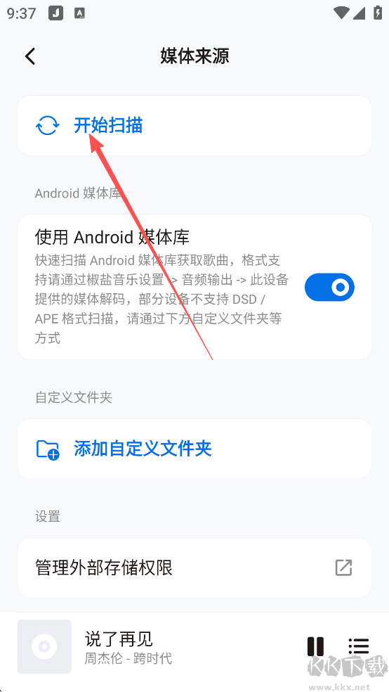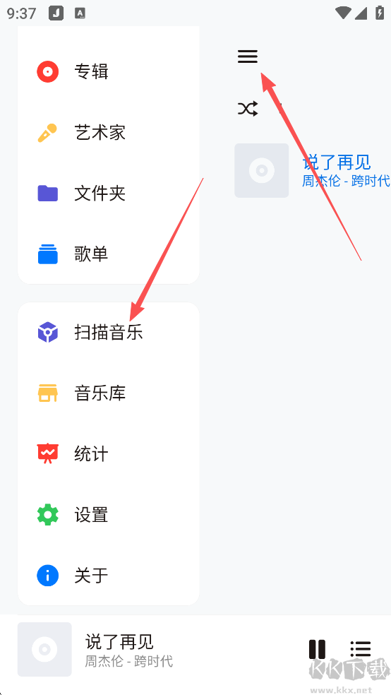 2、具备本地音乐扫描功能,自动识别手机存储中的音频文件,并按歌曲、歌手、专辑等方式分类整理;