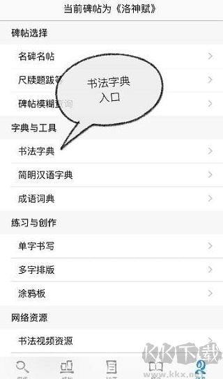 1、首次打开应用后,建议先浏览工具页中的各项功能入口,熟悉书法字典、汉语字典、印谱等辅助工具的位置与用途,便于后续查找碑帖和单字。