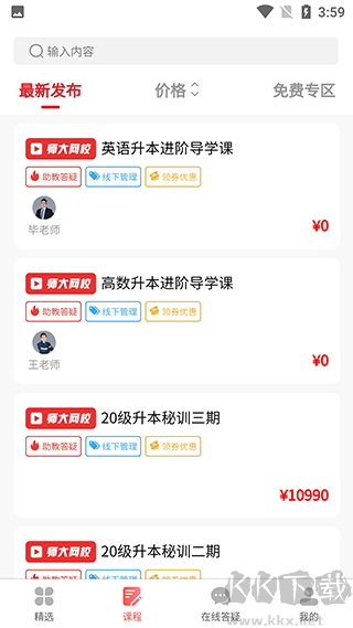 3、回到首页,点击课程可以查看最新发布的课程以及对应的学习模式和价格。