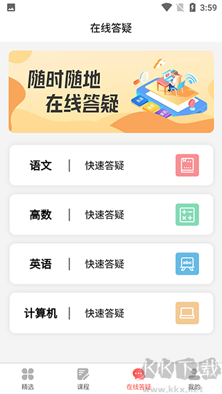 4、点击底部在线答疑栏,可以根据科目的不同对不懂的知识点进行在线问答。