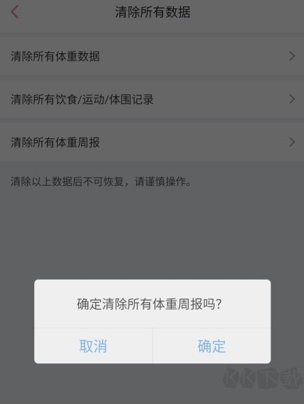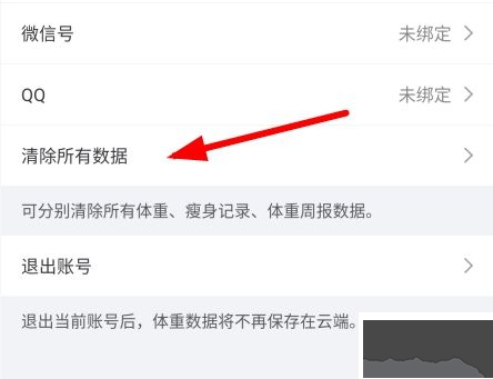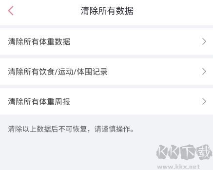 3、在这里可以清除所有体重数据、所有饮食/运动、体围记录和清除所有体重周报。