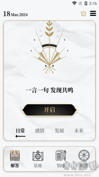 有关日常、感情、发展、未来的问题,在心中想好问题,选择对应板块,点击开启