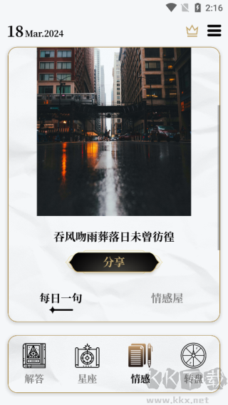 4、情感语录:每天一句温暖有力的话语,愿你在字里行间获得慰藉与共鸣。搭配图文与背景音乐的情感分享内容,让答案之书成为你情绪低落时的陪伴者,打开内心困惑的一把钥匙。