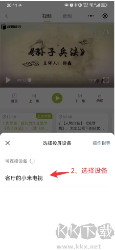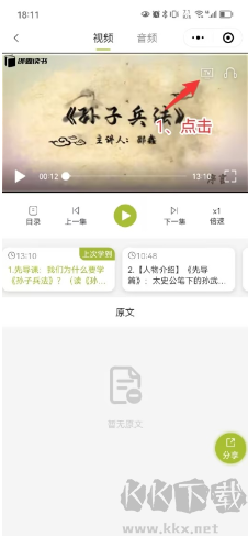 1、播放课程页面上,轻触播放画面右上方电视标识