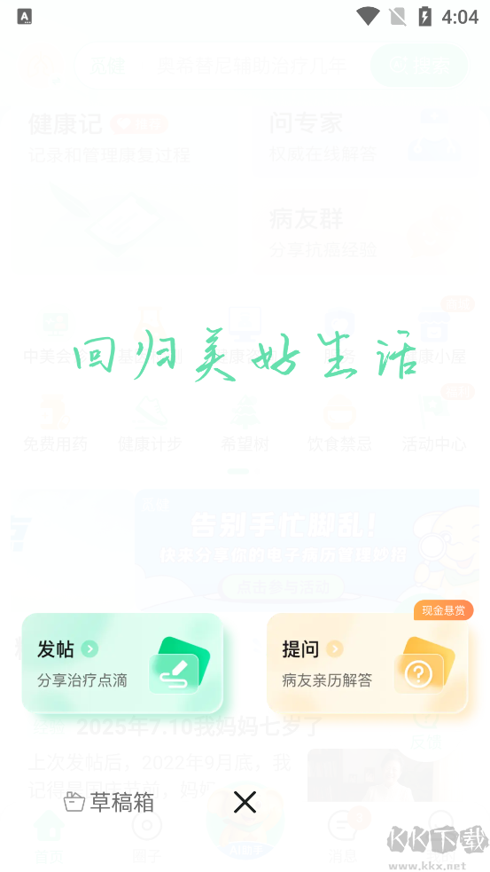 新增病友互助问答专区,汇集大量真实康复案例与医疗咨询。用户可随时提问,由经验丰富的病友或健康达人及时回应,共同探讨治疗方案、就医资源与康复技巧,打造温暖互助的社区氛围。