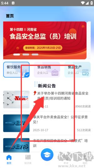 1、依据食品安全企业的不同岗位、不同环节,豫食考核应用配备了对应的研习内容。