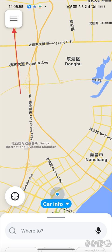1、首先打开Waze应用,点击主界面左上角的“三条横线”图标,进入功能菜单。