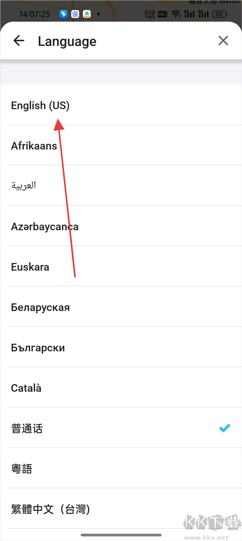5、在语言列表中找到并选择【English】,系统会自动切换成英文语音播报。
