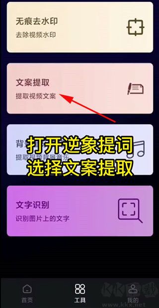 2、打开逆象提词,选择文案提取