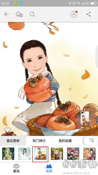 3、在APP的底端,有三项选择,一是美妆,二是背景,三是创作。