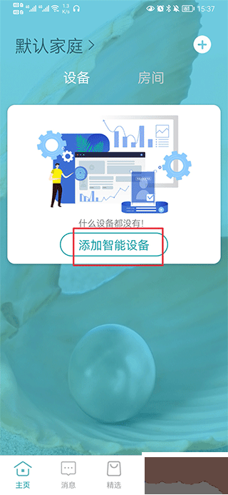 1、打开小美智能 app,点击主页中的增添智能设备。