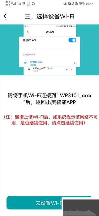 4、将手机 WiFi 连接到 wp3101_xxxx 后,就可以连接设备了。