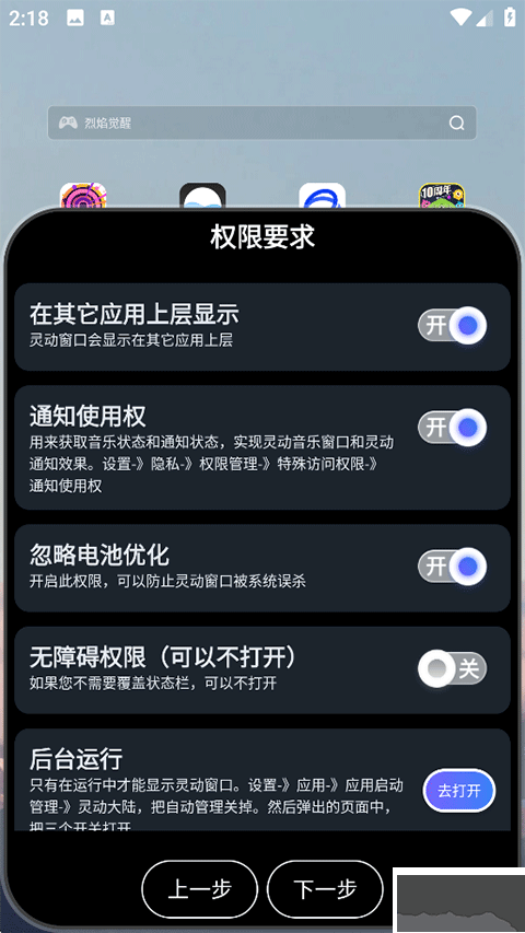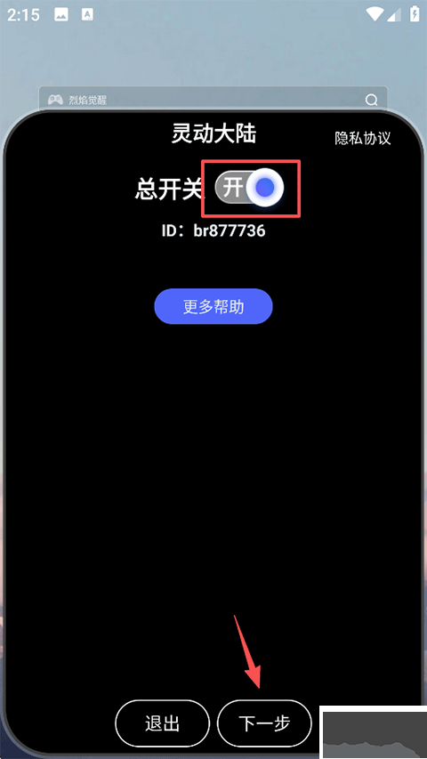 1、打开灵动大陆App即可开启总开关,点击下一步;