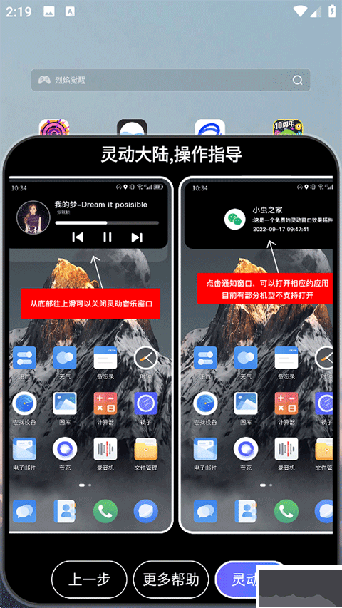 5、查看下方灵动大陆操作指引,最后点击灵动吧开启灵动岛体验。