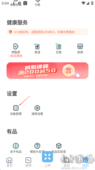 1、进入软件,点击“我的”页面,选择设置里的设备管理。