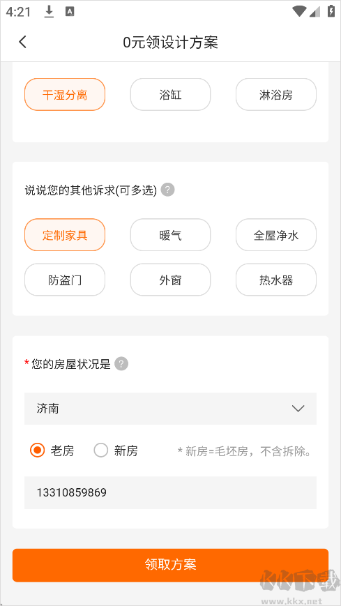 2、根据提示填写房屋的基本信息,如户型、面积和风格偏好等;