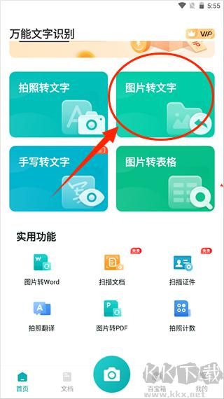 1、下载并打开万能文字识别,在主界面点击“图片转文字”选项。
