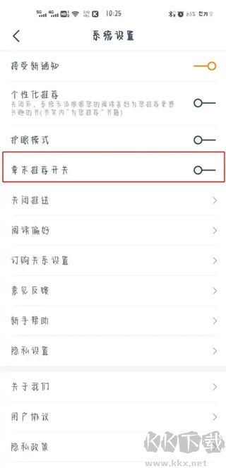 第三步:点击页面中【章末推荐开关】选项,就可以开启章末推荐功能了。