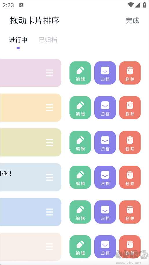2、向左滑动该任务条目,点击出现的【删除】按钮即可移除。