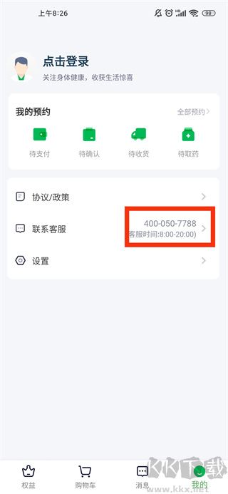 2、找到“联系客服”一栏,拨打电话即可咨询药店入驻事宜。