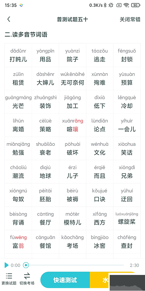 3、先对考试内容熟悉一番,首先是读单音节字词;
