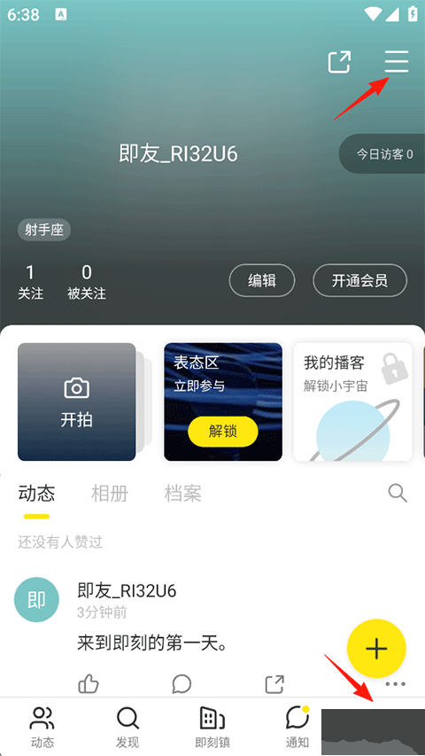 1、打开即刻APP,点击我的-右上角三线横杆;