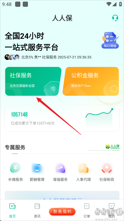 1、下载安装人人保社保代缴软件,点击首页的社保服务