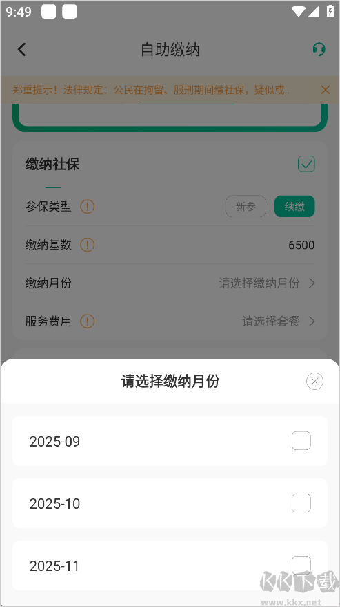 4、然后选择缴纳月份