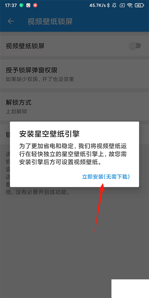 4、根据指引装入星空壁纸引擎,选择马上安装。