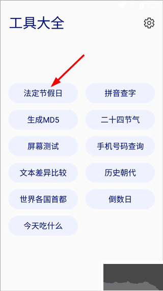1、启动木匣袋袋应用,在主界面看到齐全的器具集合,可挑选个人想了解的栏目(例如官方假日)。