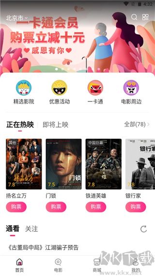 3、钱包管理:电子券、红包、会员卡、中影通卡等多种权益统一归集至个人钱包,查找与调用更加方便。