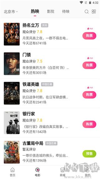 覆盖全国各城市放映影院,用户可在应用内购买任意合作影院的电影票。