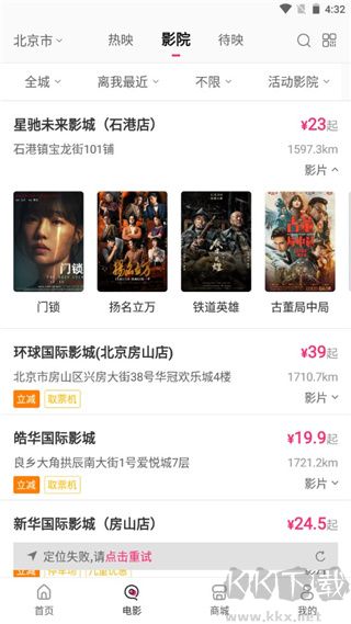 2、定位查找:系统依据手机GPS定位,智能推荐附近及周边影院,让观影安排更省心。